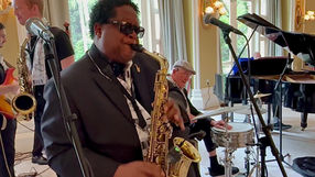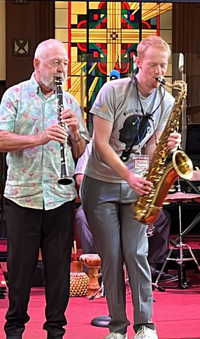 Parkinson's disease has not limited his collaboration with The 5th Dementia band. He chooses the song lists with Paul Livadary (piano) each week and leads the band with dedication and assurance.