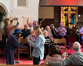 His dramatic transformation and through music and social support inspired Carol to share the rhythmic remedy with others who are suffering. Thus, the 5th Dementia intergenerational therapeutic music band was launched.